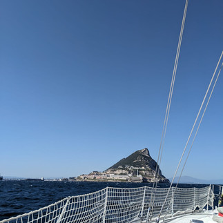 Ça y est c'est le grand départ de Barbate ! On va passer Gibraltar dans la journée car les conditions sont bonnes, le courant nous portera jusqu'au détroit. Il fait grand soleil et nous sommes très heureuses de passer cette étape tant attendue. En effet, on est impatiente d'entrer en Méditerranée. On sait qu'en Méditerranée on va commencer la sensibilisation, l'autre grand pilier de SEA Plastics. On longe les côtes espagnoles et on hisse les voiles. Plus on avance et plus on aperçoit la côte marocaine. Quelle folie de voir les deux continents au même moment ! On avance même avec les voiles en ciseaux car le vent étant au portant (il venait par l'arrière du bateau). Plus les côtes se resserrent et plus on aperçoit des gros cargos allant d'un continent a l'autre... et les montagnes marocaines au loin. Le paysage est a couper le souffle. Petites frayeur pour nous, non expérimentées en voile lorsqu'un cargo croise notre route perpendiculairement. On a encore du mal à estimer les distances alors on pensait lui foncer dedans (je me voyais déjà dans Titanic...) mais Margaux très sereine a réduit la vitesse pour le laisser passer en premier ! On a même vu des dauphins, mais pas d'orques, ouf !